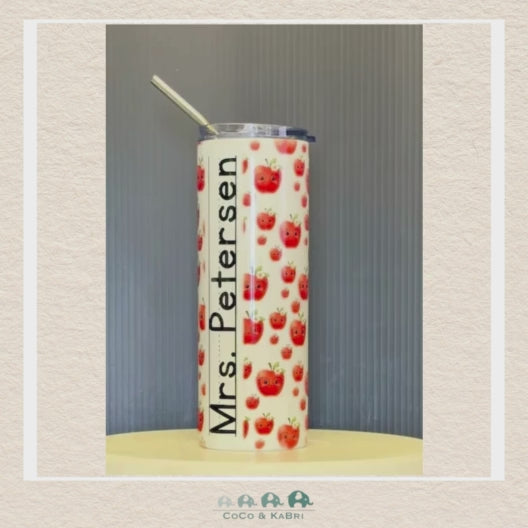 20 oz Stainless Steel Tumbler - Apples With Teachers Name