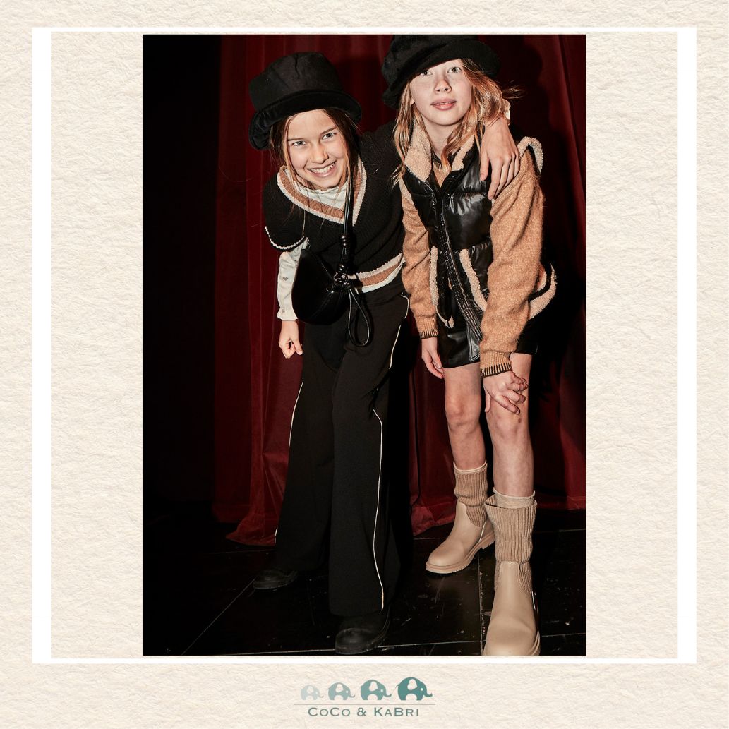 Chic black double-waist pants for girls, blending effortless style with cozy comfort for little trendsetters.