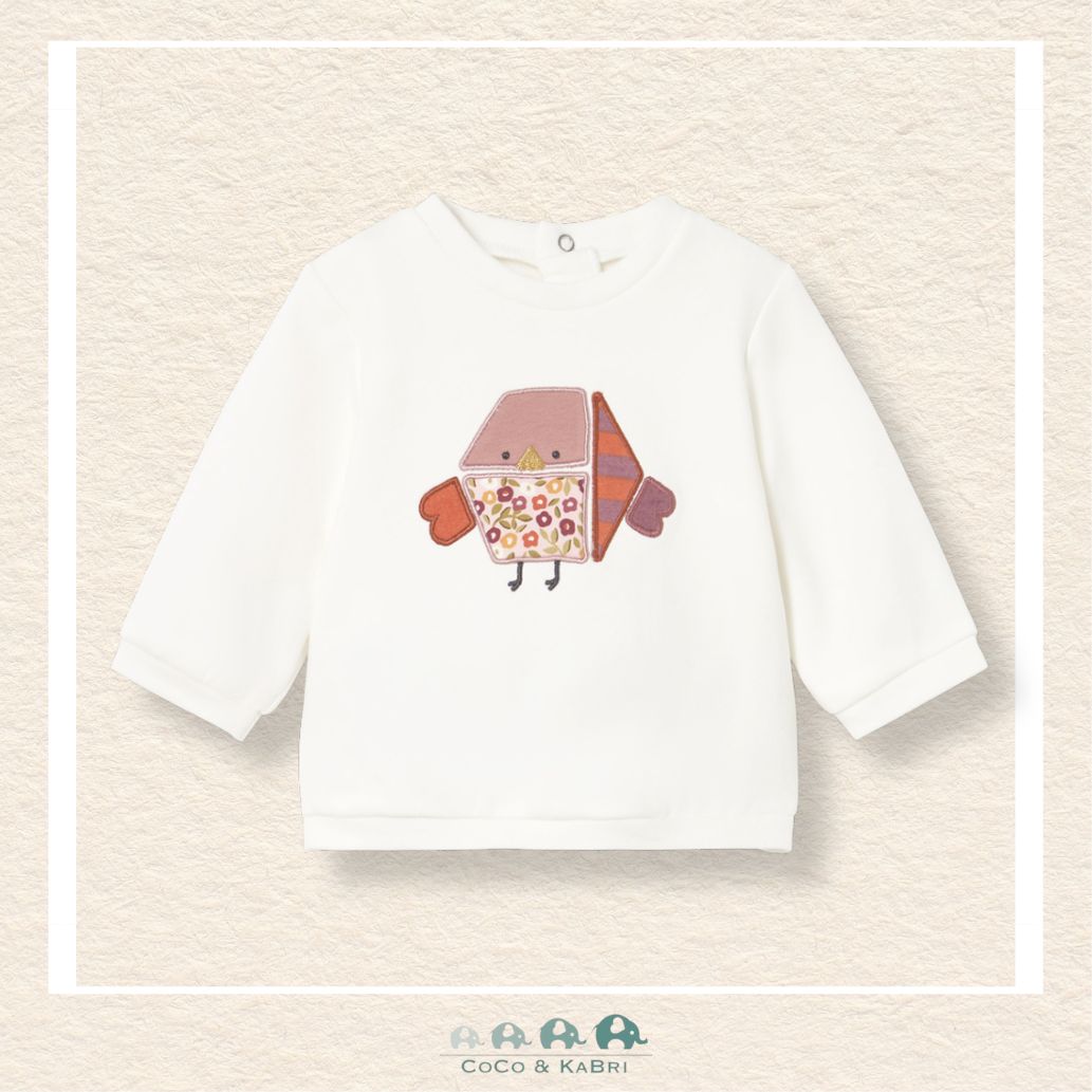 A darling layered look for your little one! This 3-piece set from Mayoral includes a soft long-sleeve hoodie with delicate embroidery and a convenient back button closure, cozy pants with an elastic waistband and adjustable drawstring, and an adorable patterned vest featuring appliqued ears, ruffled trim, and a sweet floral print. The vest's soft lining keeps baby warm, while the little bird graphic on the hoodie adds the perfect finishing touch. Designed for comfort and cuteness—ideal for cooler days and special outings.