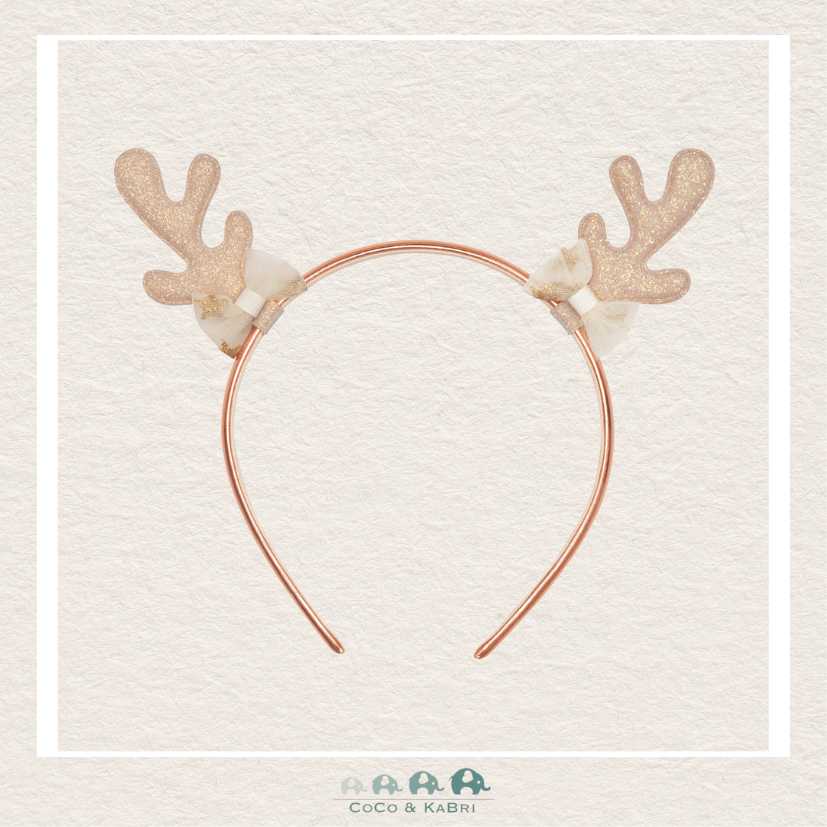 The sweetest headband to add a little festive shimmer to your Christmas! These pale pink glitter reindeer ears are adorned with gold tulle bows on each side. They are set securely onto a rose gold PU-covered band, which is designed to provide a comfortable fit for little heads.